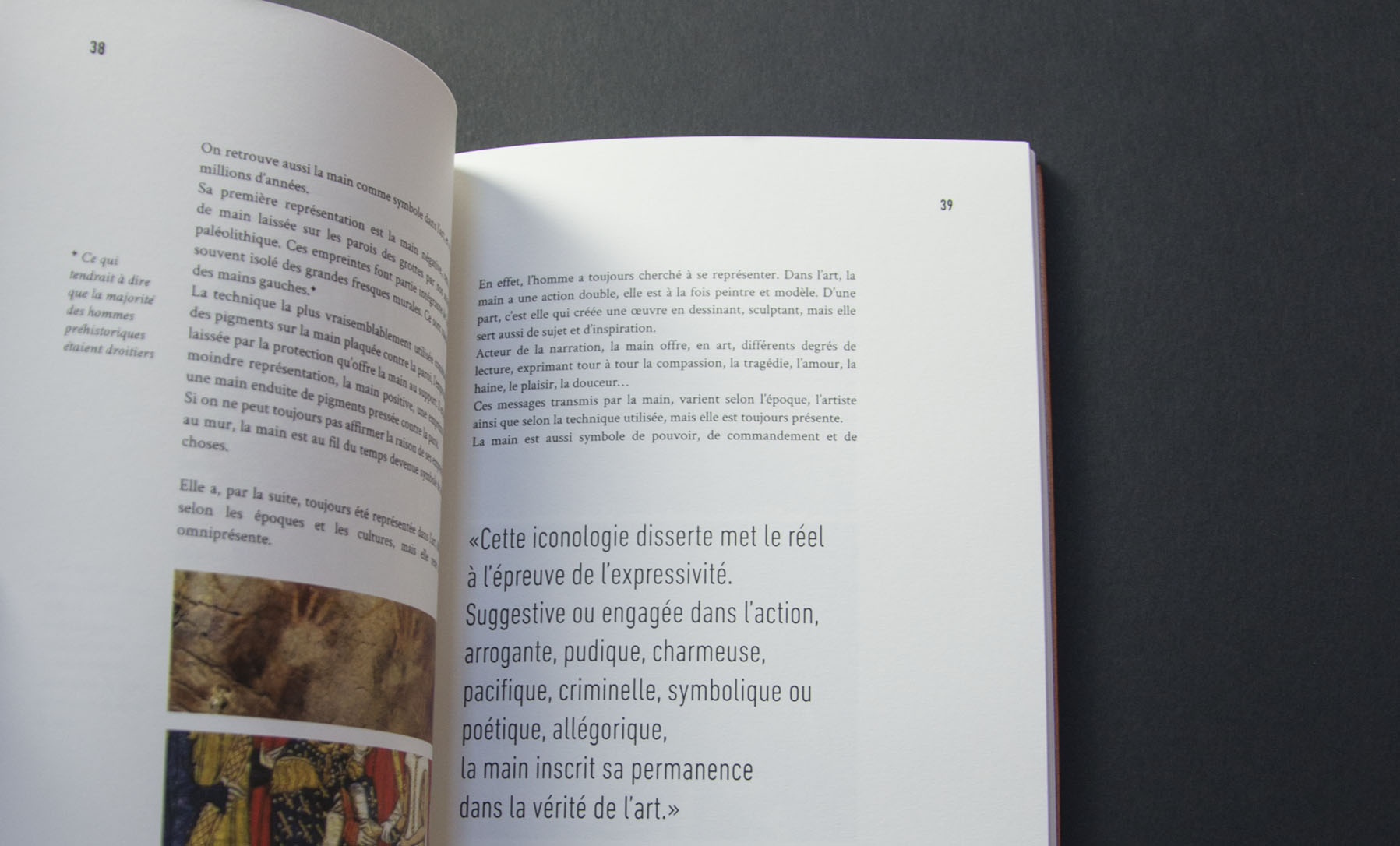 Redéfinir la main, l’observer, l’apprivoiser, pour mieux comprendre les créations qu’elle engendre et qui peut être la font disparaître. Au fil de ce mémoire, je suis allée de découvertes en découvertes, abordant un nombre de domaines divers et variés où la main a un rôle important et parfois insoupçonné.