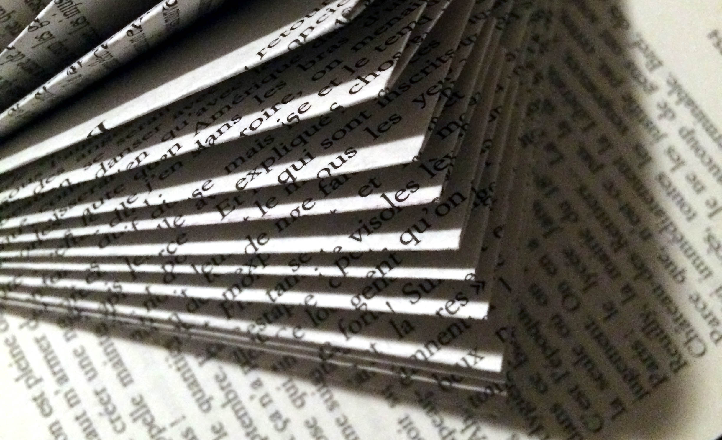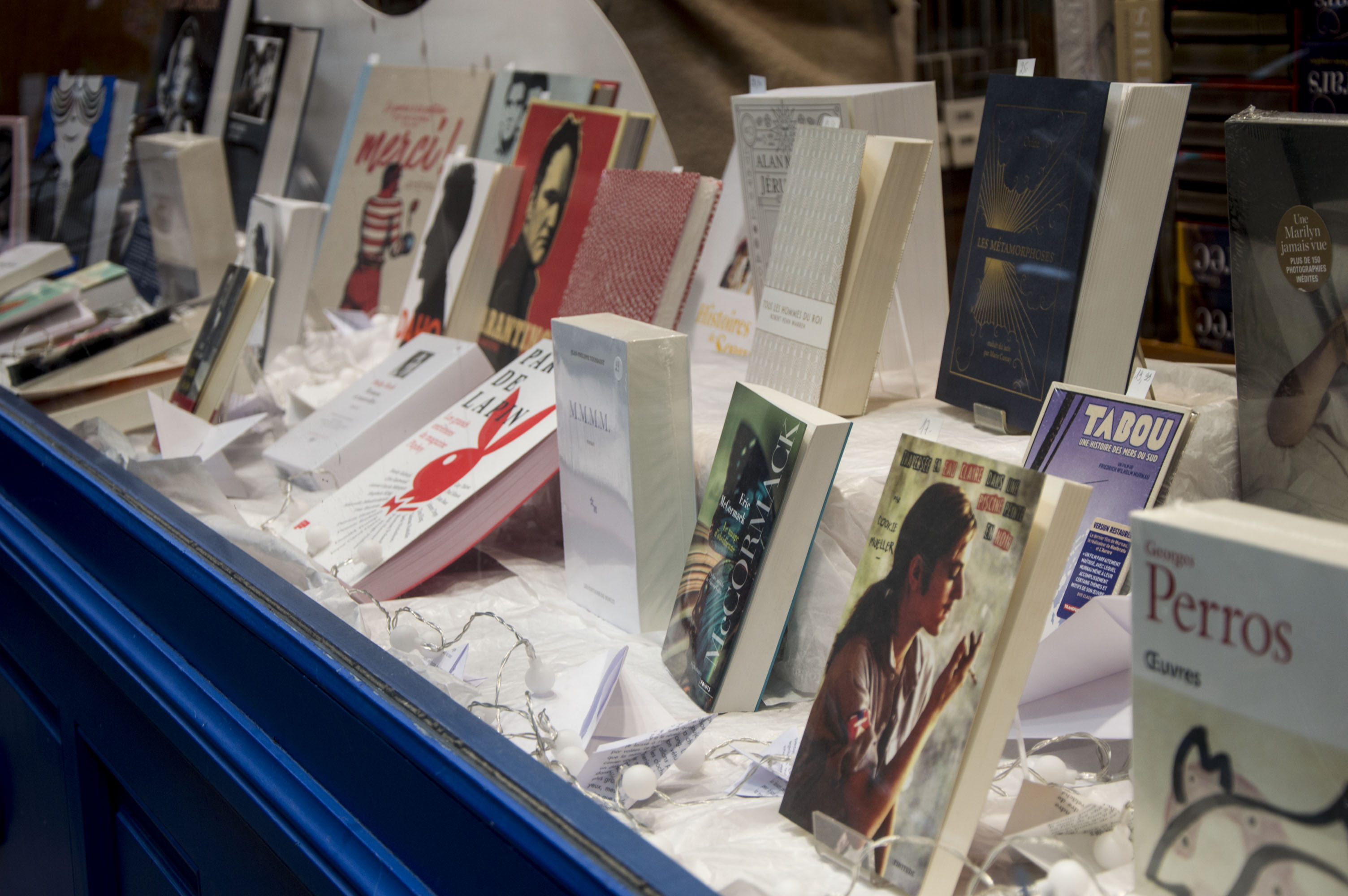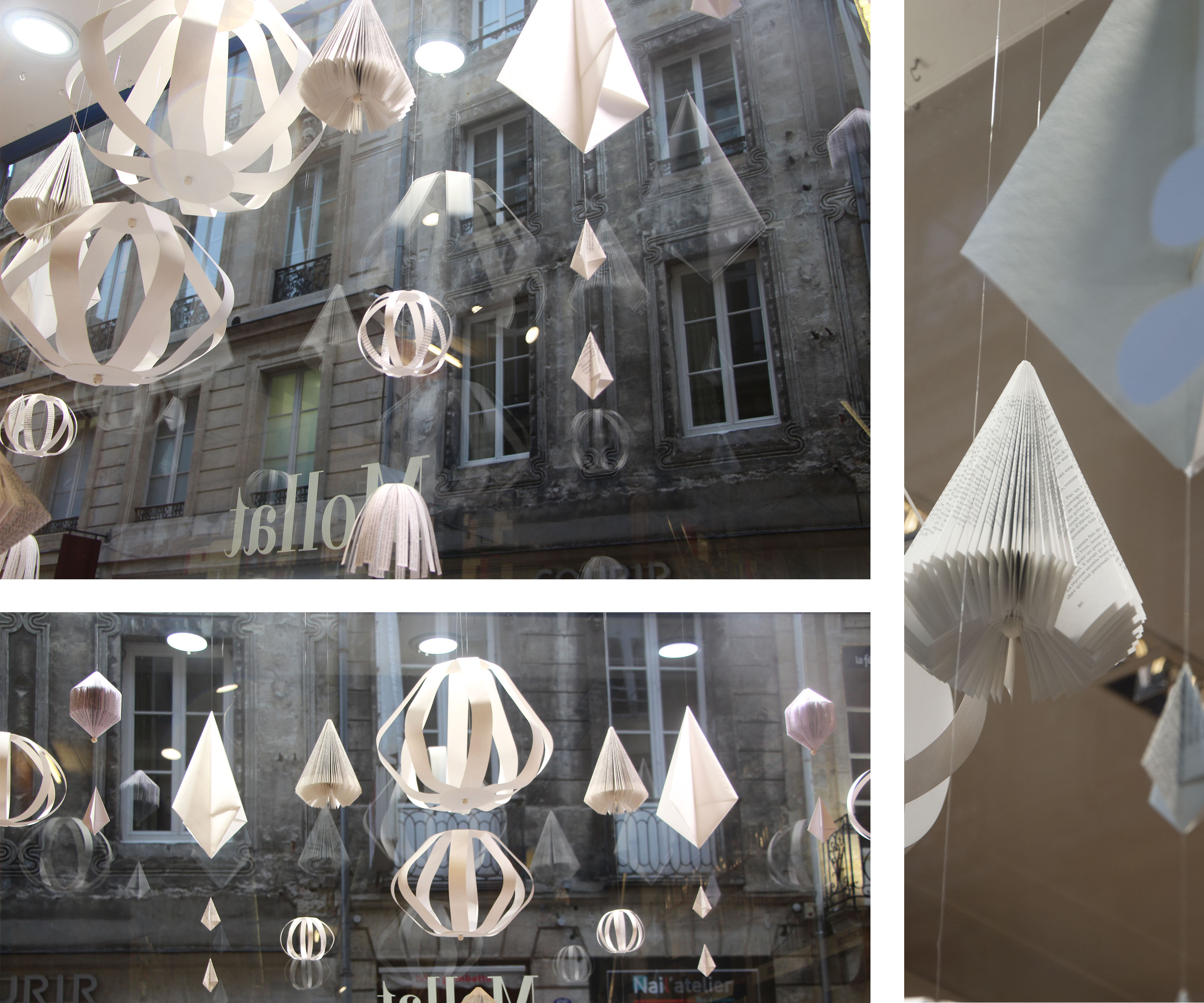 Lire un ouvrage, c’est se faire une représentation personnelle du monde qui nous est décrit. Les vitrines laissent aux passants le droit d’interprétation personnelle. Elles offrent une installation qui met en avant le papier et la sculpture autour du livre, dans un univers blanc, pur et scintillant.