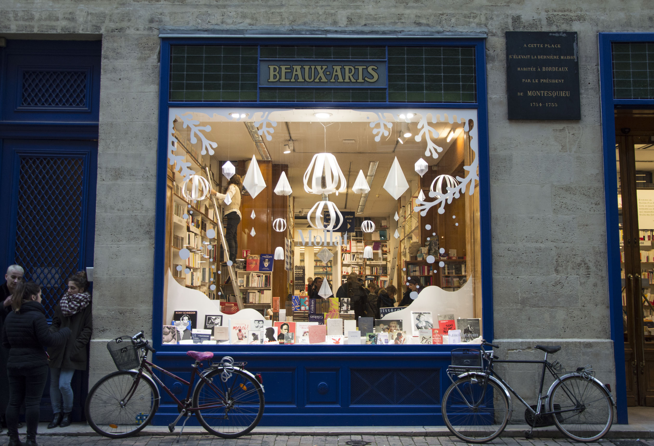 Pour Noël 2017, Mollat, la plus grande librairie indépendante de Bordeaux a fait appel à nous pour la conception et réalisation de ses vitrines. Le concept de notre groupe, "Le blanc imaginaire" a été choisi comme thème principal.